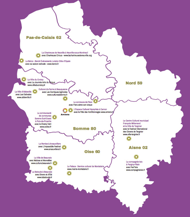 Lieux culturels, collectivités et associations, chacun d’entre eux met au service de l’habitant ses ressources et ses expériences afin de permettre à tous de profiter d’une programmation culturelle et artistique axée sur le cirque et les arts de la rue. Chaque année, grâce à la mutualisation des forces et des expertises, la programmation s’enrichit de propositions artistiques de plus en plus variées et originales.